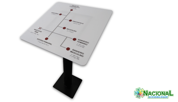 A Nacional Acessibilidade produz mapas táteis em qualquer tamanho, que podem ser utilizados em ambientes internos, para ampliar a capacidade intelectual, ou como facilitadores na orientação e mobilidade dos deficientes visuais ao acessarem edifícios, bancos, rodoviárias, centros urbanos e etc.
